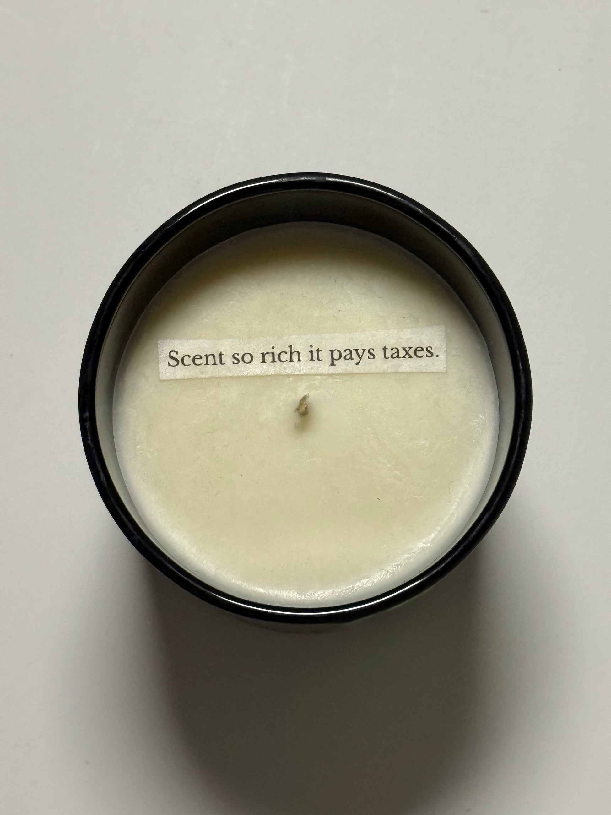 Vzkaz této svíčky: Scent so rich it pays taxes.